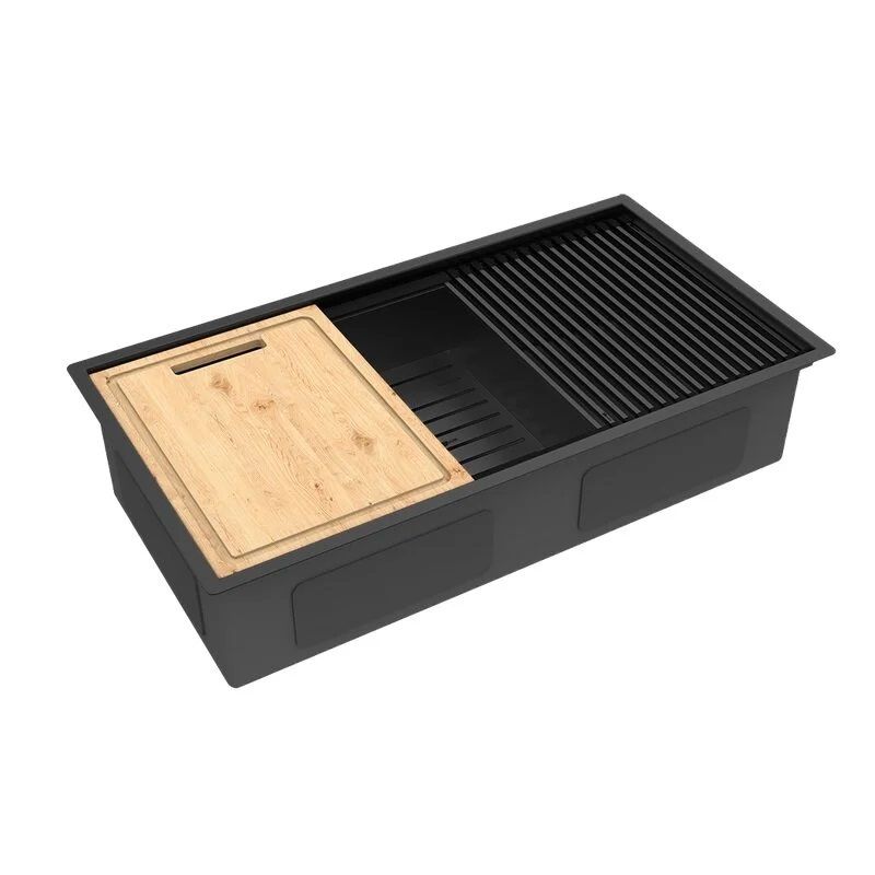 Кухонная мойка Lemark Tabaga 820 9932136 в комплекте с разделочной доской ролл-матом и коландером чёрный матовый
