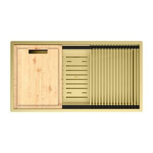 Кухонная мойка Lemark Tabaga 820 9938134 в комплекте с разделочной доской ролл-матом и коландером светлое золото