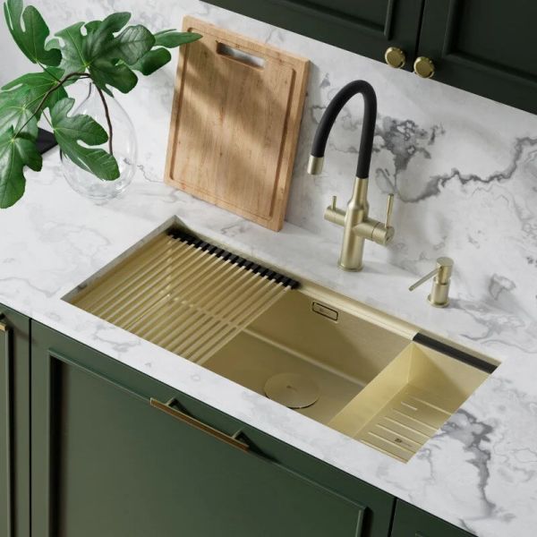 Эстетичный внешний вид. Мойки выполнены в 4-х современных цветах: сталь, светлое золото, графит и черный матовый, что позволяет выбрать мойку, соответствующую стилю кухни.