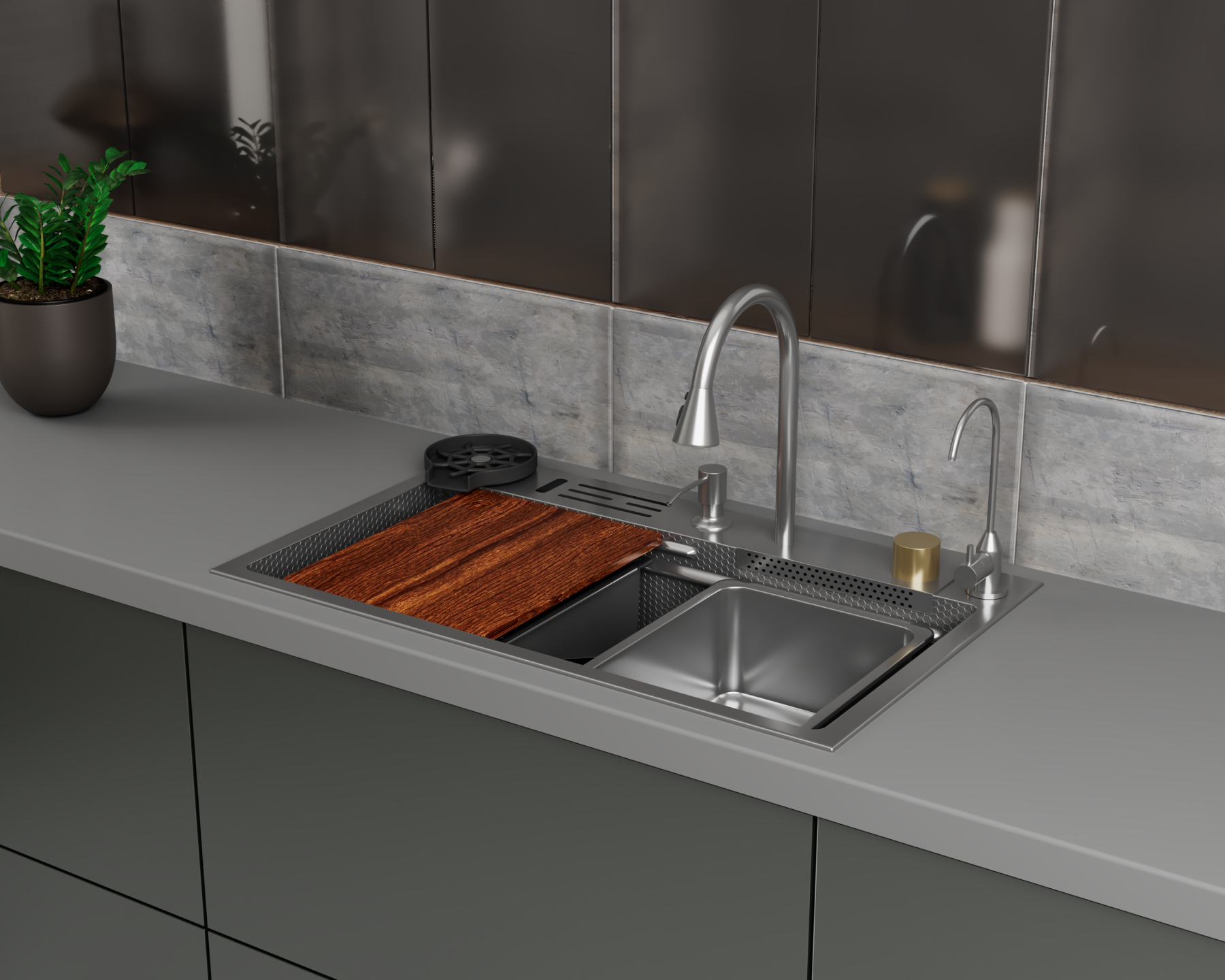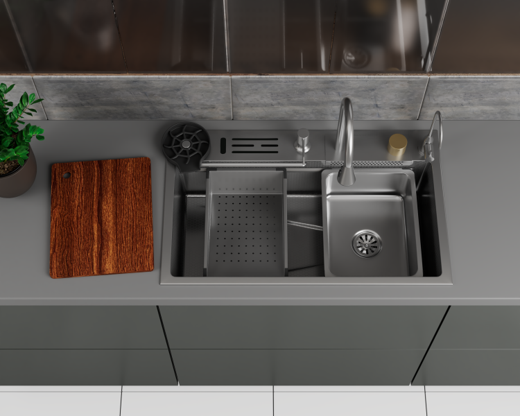 Многофункциональные мойки кухонные сделаны вручную из высококачественной нержавеющей стали SUS304, обработанной холодом для придания изделию прочности. Мойки идеально выдерживают перепады температуры, практичны и износостойки.