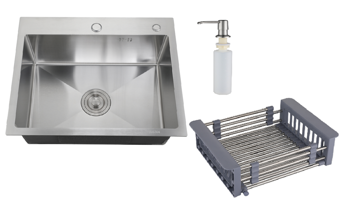 Набор 3 в 1 РМС (кухонная мойка+ корзина раздвижная+ дозатор врезной). В комплекте: евросифон высокого качества.Металлические элементы изготовленны из нержавеющей стали.Гофра с универсальным выходом 40/50. Цвет: нержавеющая сталь.Размер: 580*430 мм.Глубина: 200 мм.Толщина: 1-3 мм