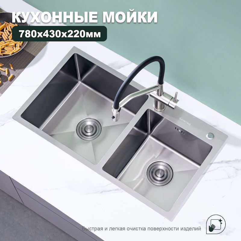 Кухонная мойка Splenka S706.7843.05, сатин. Размер - 780*430*220мм. Кухонные мойки Splenka отлич... Подробнее