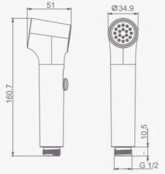 R460.05.03 Лейка гигиеническая с клавишей регулировки напора воды, универсальное присоединение под любой шланг.