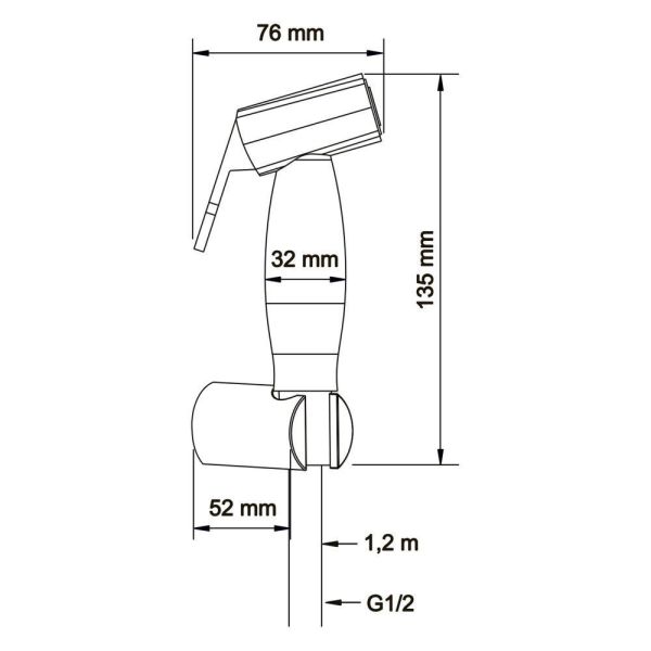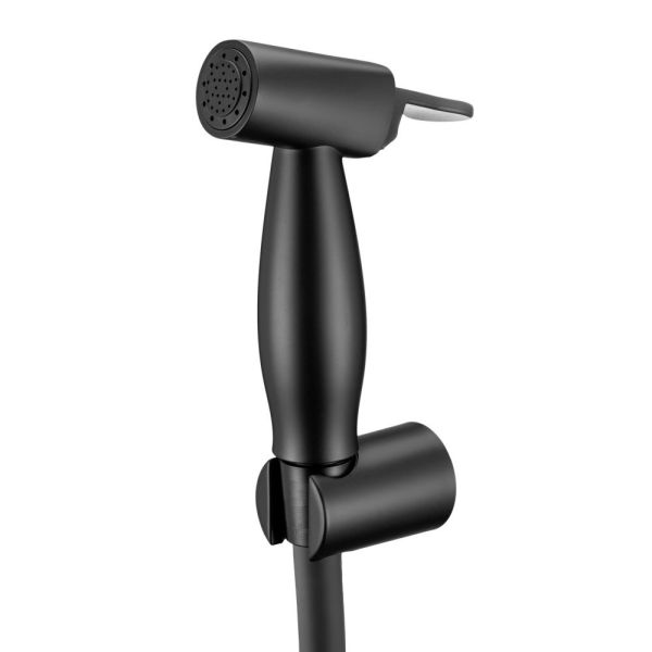 Гигиенический набор 2 режима - стандартный и режим наполнения емкостей.Сопло из монополимера стойкого к обрастанию водным камнем. Запорное седло из латуни. Тест от протечек на 5 Bar на 24 часа. Шланг PVC (1,2 м) с системой против скручивания.Цвет: черный.