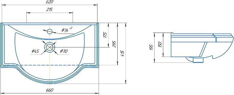 Полукруглая форма раковины Kirovit оптимальных размеров: шириной 66.5 см, глубиной 41.5 см, высотой 20 см, способствует комфорту использования и монтажа. Ретро стиль, в котором выполнена раковина Kirovit Классик 65 передается во всех элементах данной модели. Материалом, из которого произведена раковина Классик 650 является фаянс, данный материал отличается максимально гладкой поверхностью, и абсолютной гигиениченостью.