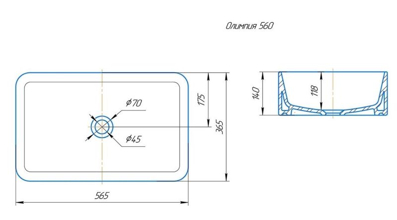 Раковина устанавливается на столешницу, хромированное кольцо для переливного отверстия в комплекте.