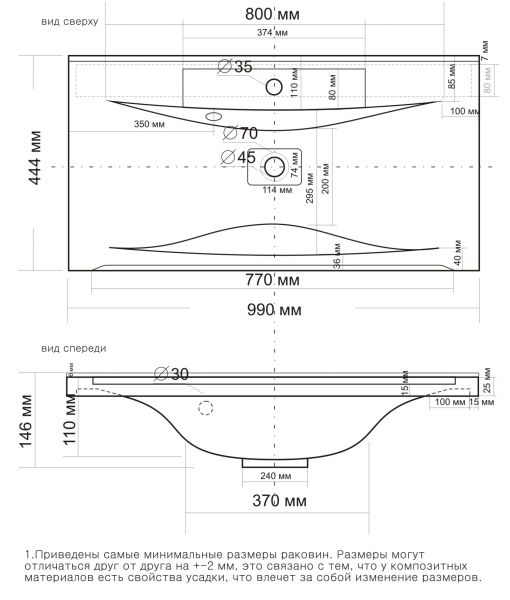 Прямоугольная форма раковины Madera Milen оптимальных размеров: шириной 99 см, глубиной 44.4 см, высотой 14.6 см, способствует комфорту использования и монтажа. Современный стиль, в котором выполнена раковина Madera передается во всех элементах данной модели. Материалом, из которого произведена раковина является искусственный камень, данный материал отличается максимально гладкой поверхностью, и абсолютной гигиениченостью.