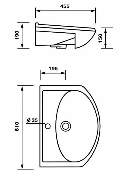 Компактная округлая форма экономит место, а встраиваемая в мебельную тумбу конструкция создает дополнительное пространство для хранения.