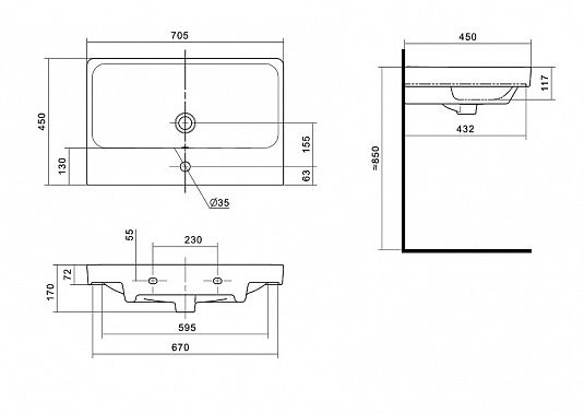 Раковина Santek Адриана 70 с отверстием под смеситель - это идеальное решение для создания элегантного и функционального интерьера вашей ванной комнаты, обеспечивая приятные впечатления и комфорт в повседневном использовании.