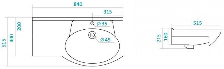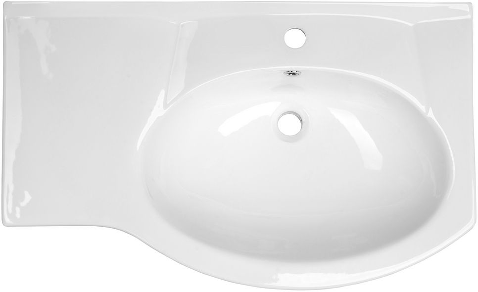 Керамическая раковина Santek КОРАЛЛ 82 отличается нестандартной формой с крылом, сверкающей белизной, высоким качеством исполнения, практичностью и функциональностью. Крыло слева обеспечивает больше места для размещения необходимых мелочей, а встраиваемая в мебельную тумбу конструкция создает дополнительное пространство для хранения.