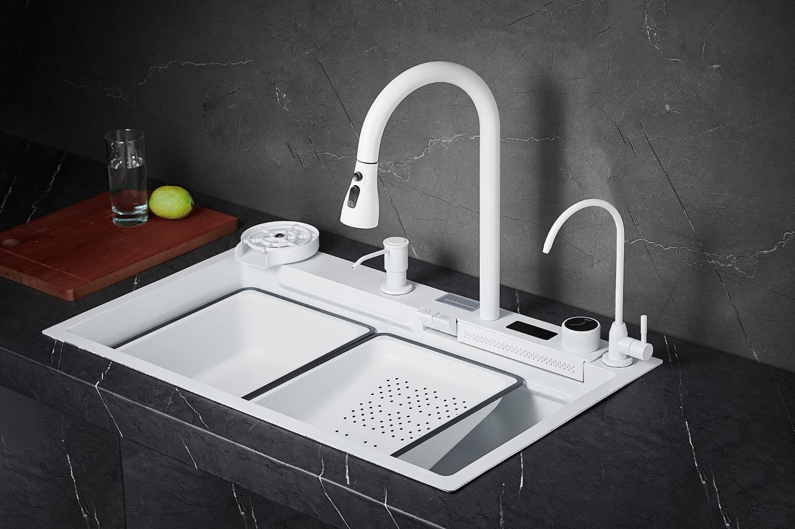 Многофункциональная кухонная мойка Savol S-SC002W с водопадом 75см белый