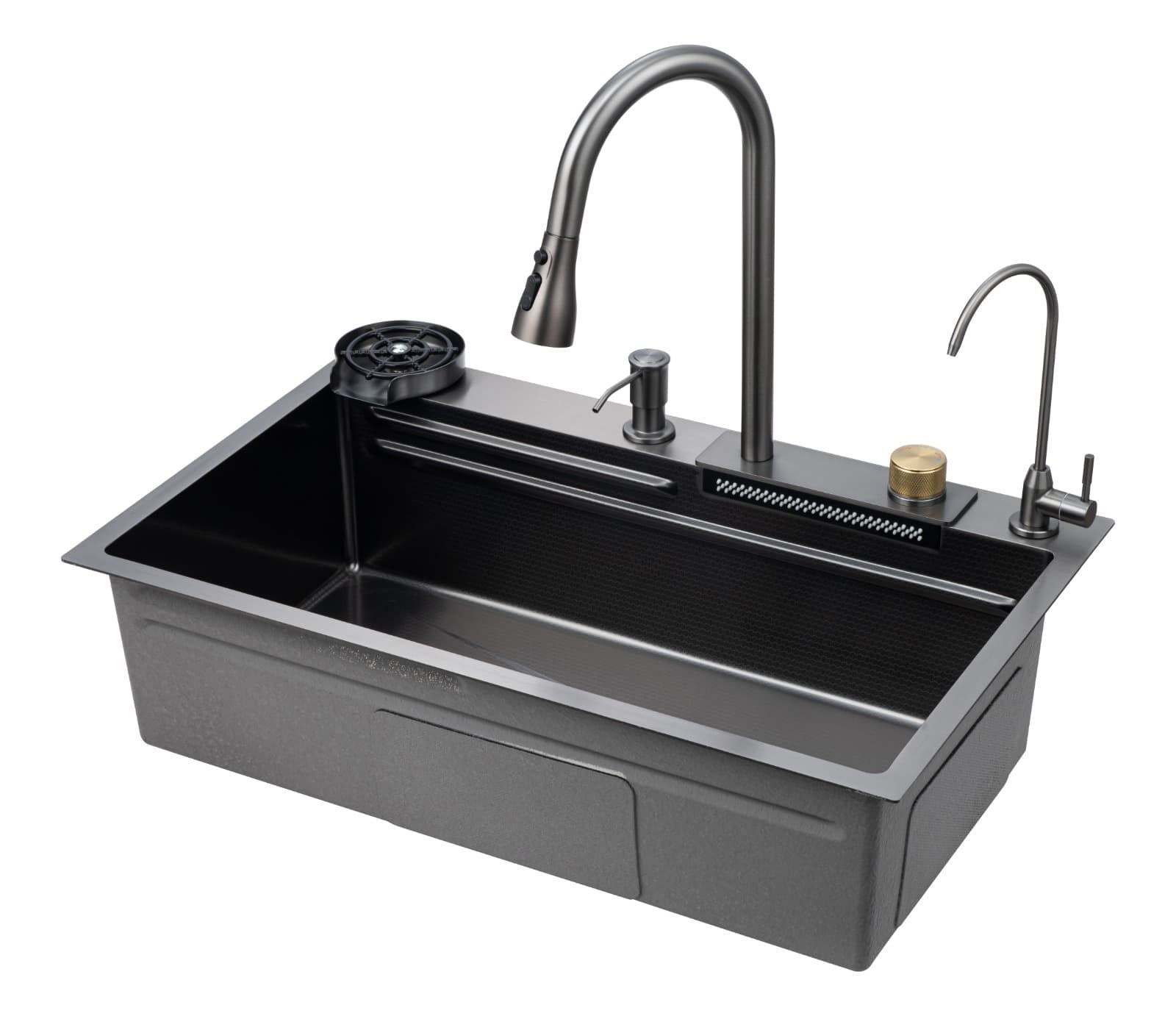 Многофункциональная кухонная мойка Savol S-SC003Q с водопадом 75см графит купить