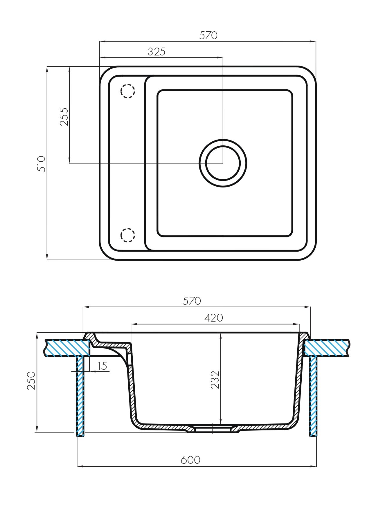 • Отверстия под смеситель: