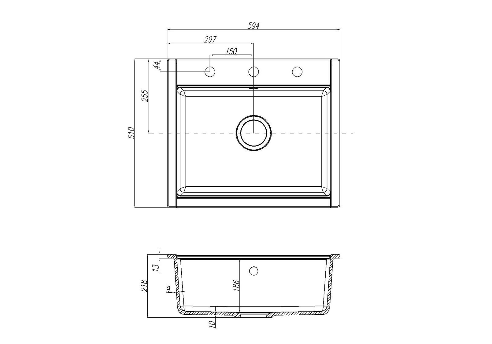• Отверстия под смеситель: