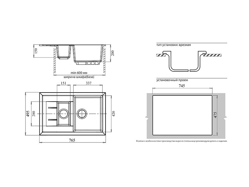 Мойка кухонная GranFest Чёрная Quadro Q-775 KL чер купить