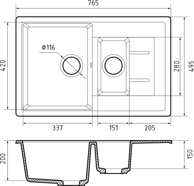 Мойка кухонная GranFest CLASSIC Q-775KL черный купить
