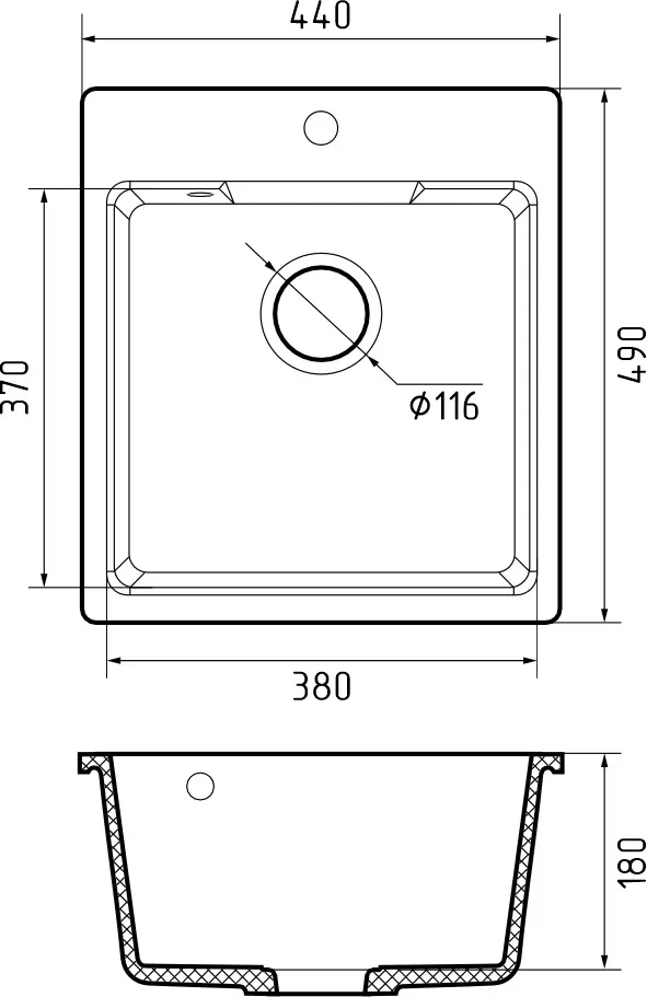 Размер чаши: 380 * 370 * 180 мм