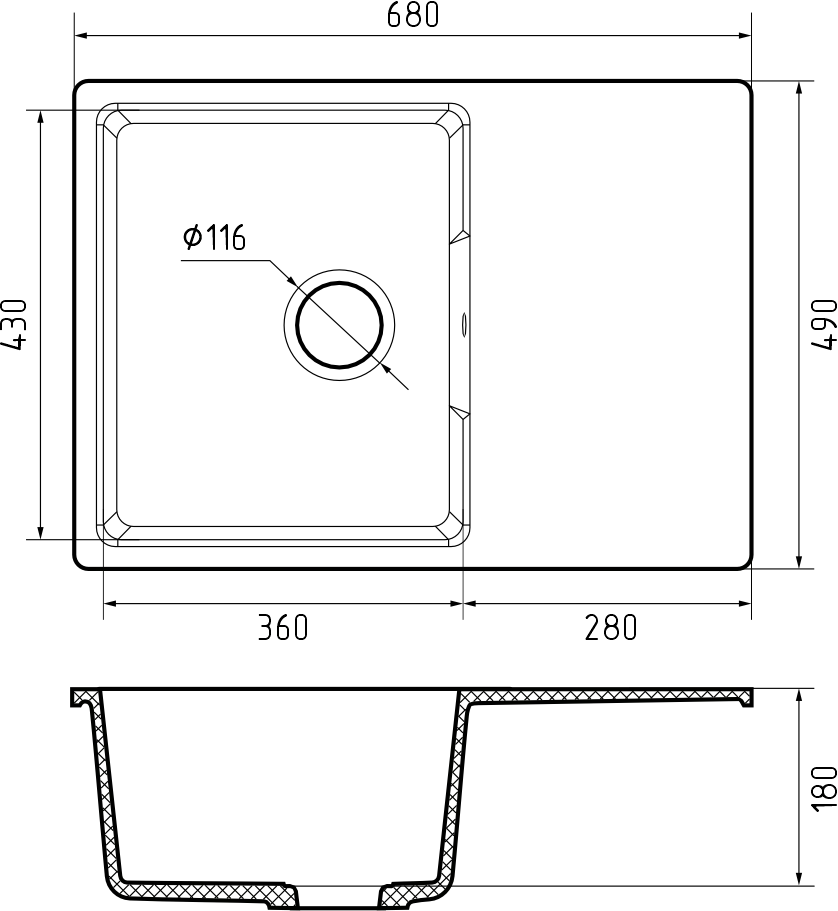 Комплектация: сливная арматура с корзинчатым вентилем (Ø 3.5""/90 мм), тех.паспорт, гарантийный талон."