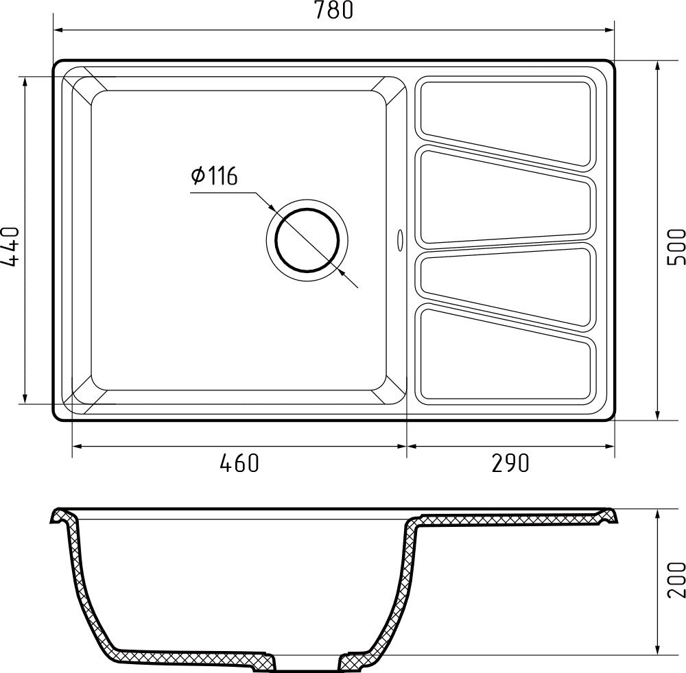 Мойка кухонная GranFest VERTEX V-780L кашемир