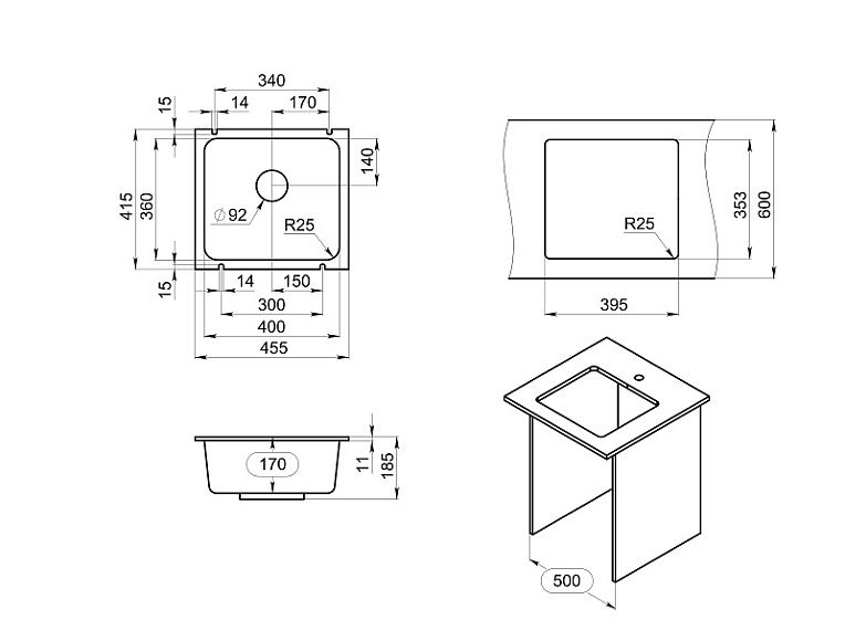 Мойка кухонная Granula 3601, АЛЮМИНИУМ