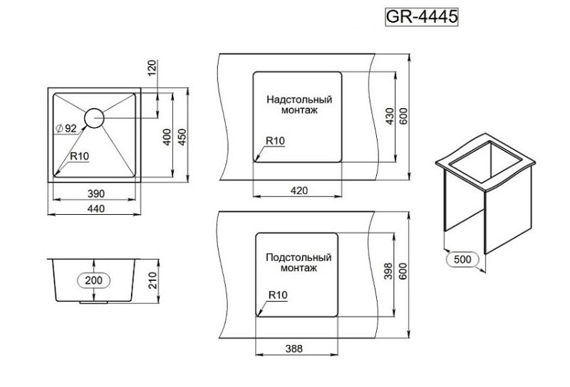 Мойка кухонная Granula 4445U, ЗОЛОТО САТИН Подробнее