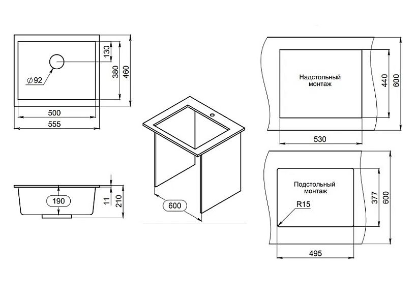 Мойка кухонная Granula 5551, АРКТИК