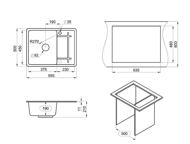 Мойка кухонная Granula 6501, ЧЁРНЫЙ