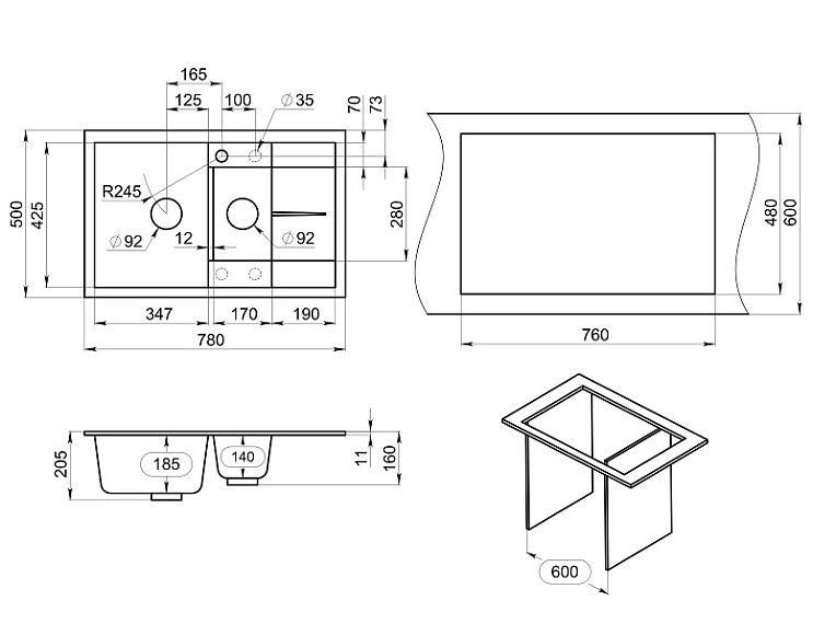 Мойка кухонная Granula 7802, ГРАФИТ Подробнее
