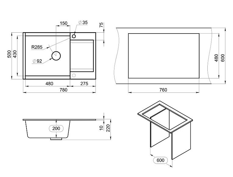 Мойка кухонная Granula 7807, БАЗАЛЬТ