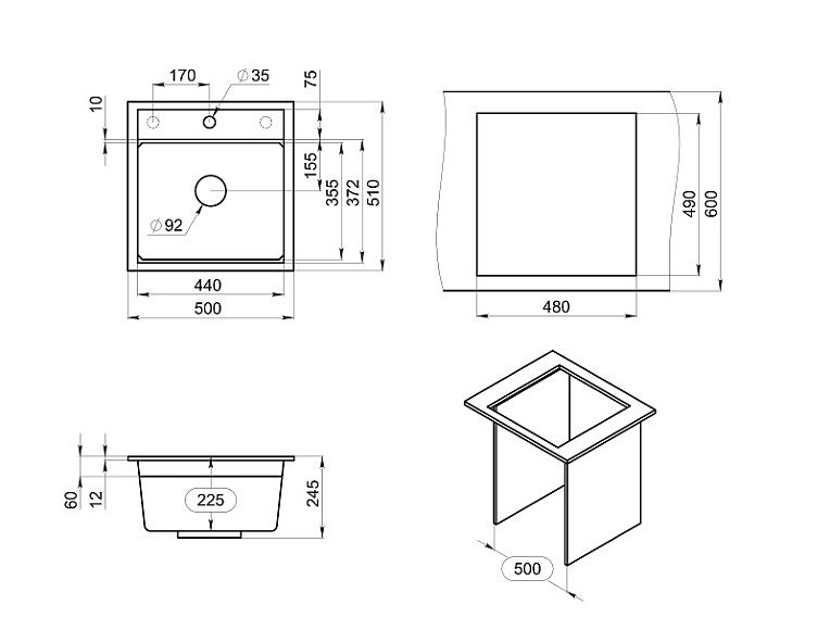Мойка кухонная Granula Kitchen Space 5002, ЧЁРНЫЙ