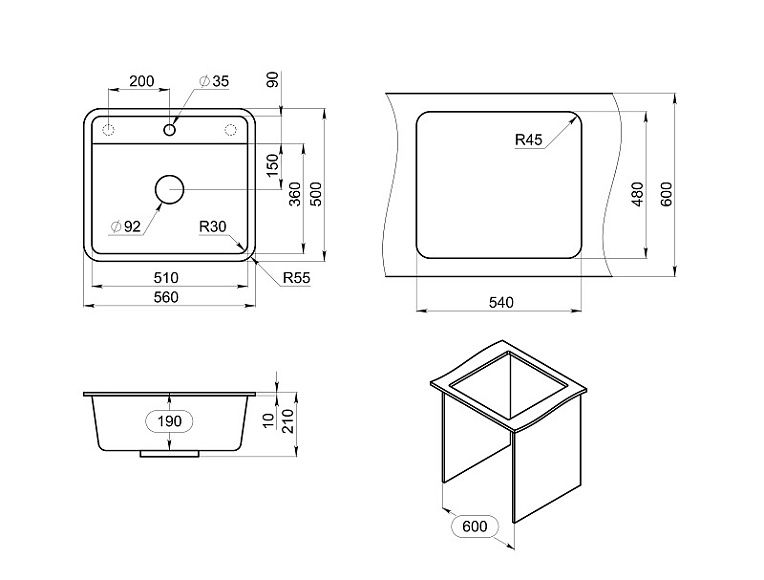 Мойка кухонная Granula Standart 5601, ЧЁРНЫЙ