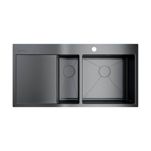Мойка кухонная Omoikiri Akisame 100-2-GM-R нерж.сталь/вороненая сталь