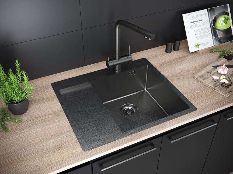 Мойка кухонная Paulmark Alster PM825951-GMR правая воронёная сталь купить