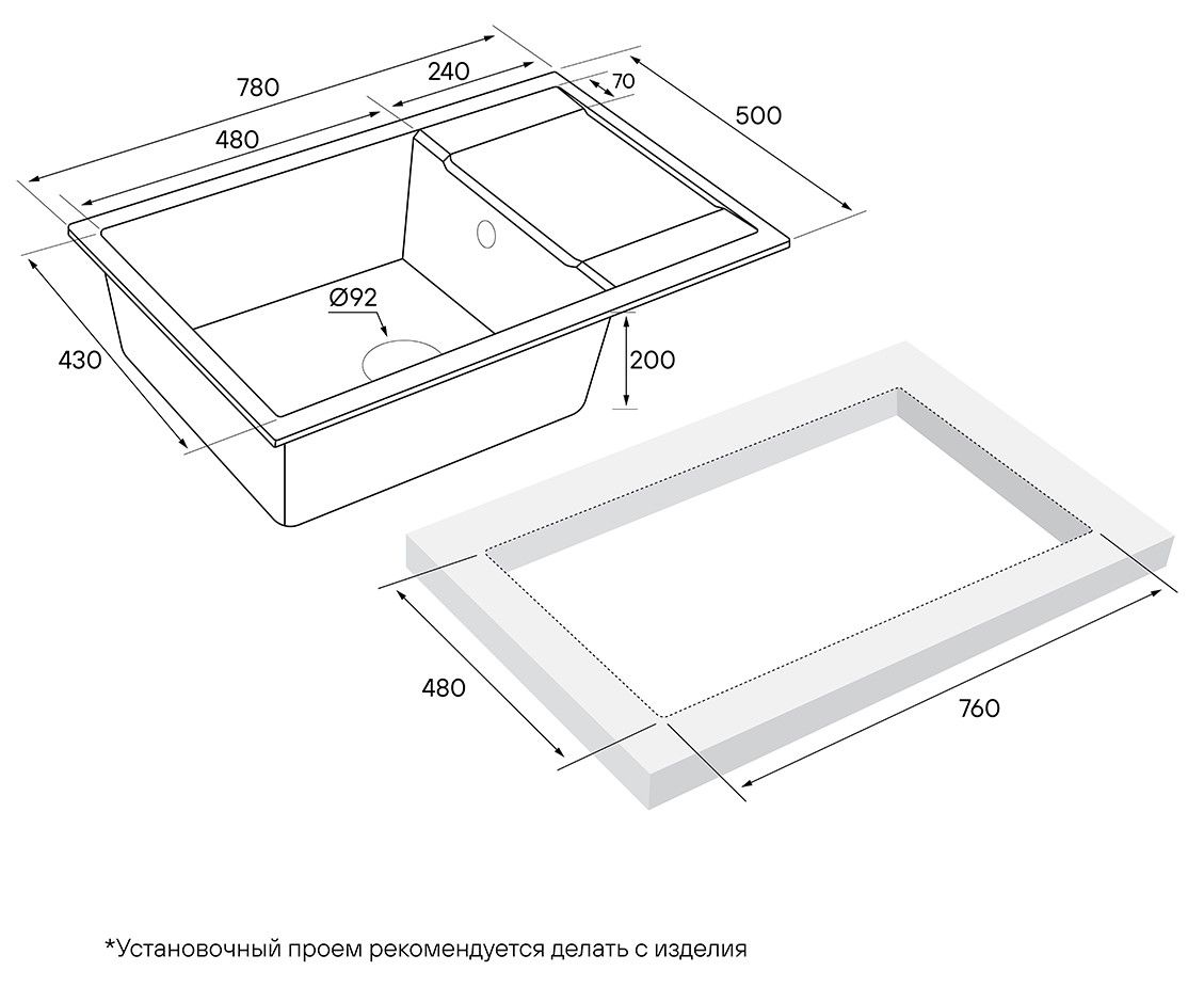 Материал мойки не нужно герметизировать, и, поскольку он не пористый, то он максимально устойчив к окрашиванию.Функциональное плоское крыло мойки