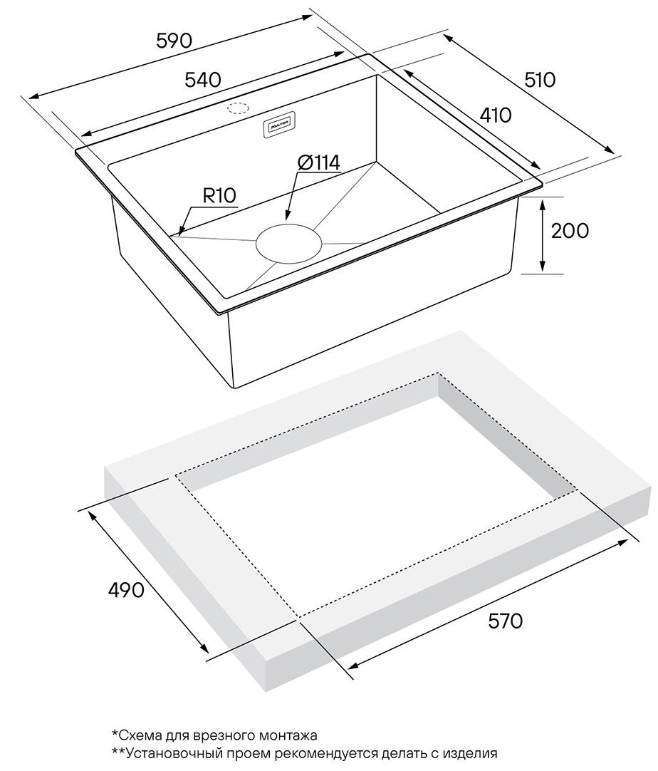 Мойка кухонная Paulmark Isar PM805951-BS брашированная нержавеющая сталь