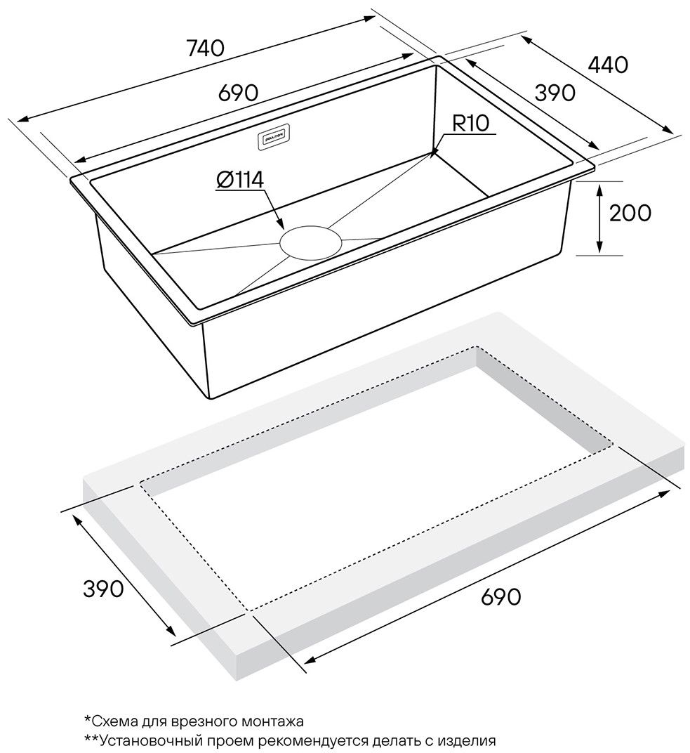 • Отверстия под смеситель: