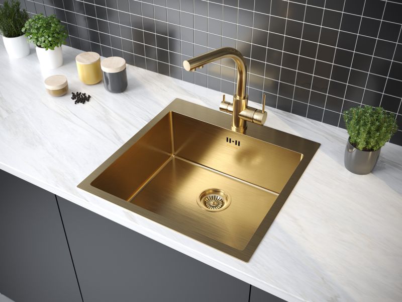 Мойки KRONER в оттенке GM имеeт прочное PVD покрытие, которое нанесено на нержавеющую сталь. Оно особенно устойчиво к появлению царапин и истиранию, не содержит микротрещин и является экологически чистым.Не подвержена деформации;