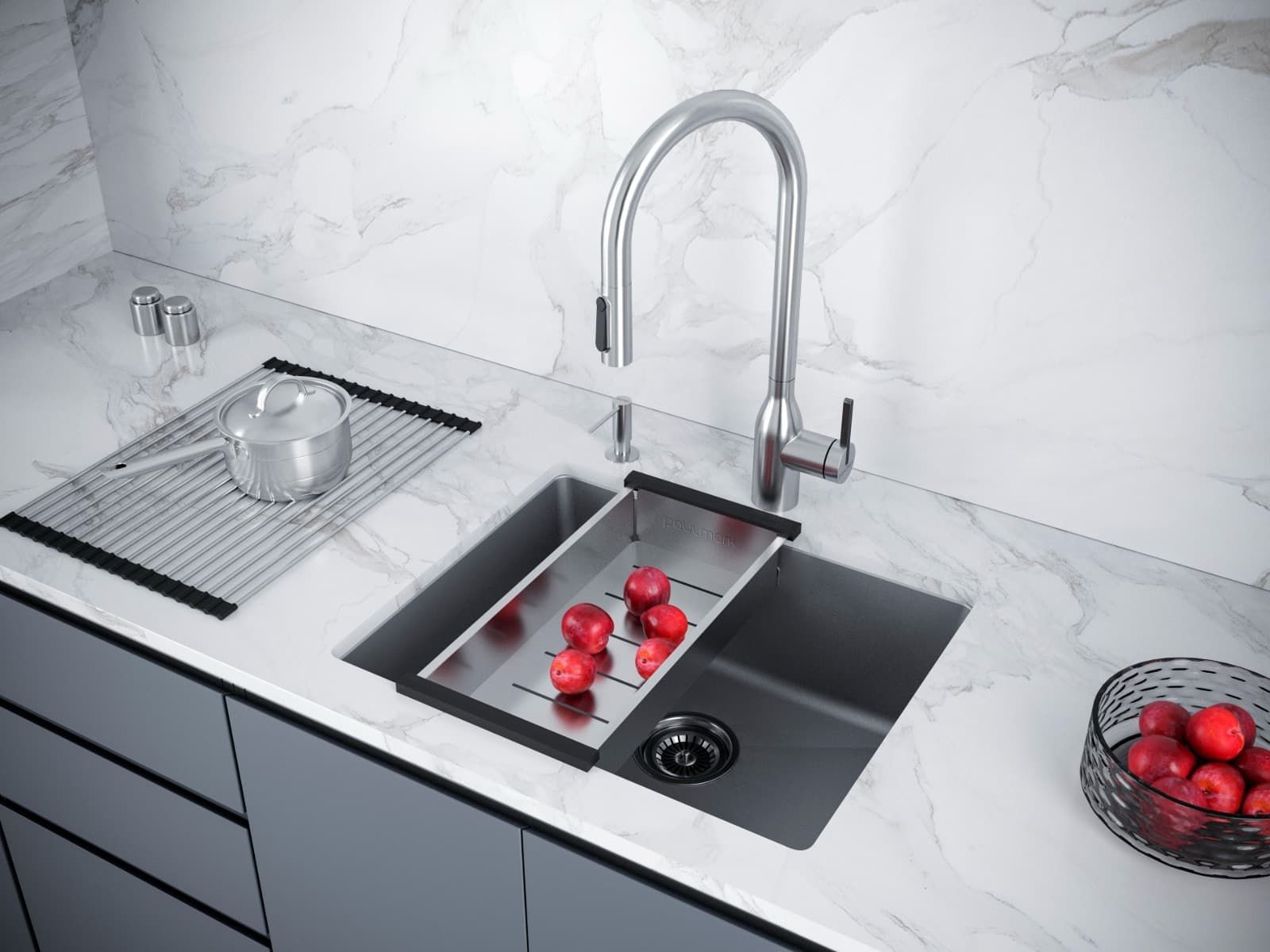 IT-GRANIT – это композитный материал, состоящий на 80% из фракций калиброванной натуральной гранитной крошки и на 20% из связующих композитных смол. Материал кухонных моек из IT-GRANIT имеет на ощупь структуру, схожую с поверхностью камня, но в то же время по прочности и износостойкости превосходит натуральный гранит.Эргономика каждой модели мойки из IT-GRANIT разработана по специальной усовершенствованной технологии и продумана до мелочей для максимального удобства в ежедневном использовании. Мойки из IT-GRANIT изготовлены из химически неактивных материалов, благодаря чему они не вступают в реакцию с продуктами и полностью безопасны для здоровья человека.Фракции натурального гранита, которые входят в состав мойки, твёрдые и тугоплавкие, и поэтому изделия из IT-GRANIT максимально устойчивы к перепадам температур и механическим повреждениям: сколам, царапинам. Непористая структура материала IT-GRANIT обеспечивает легкость в уходе за мойкой.При производстве моек Paulmark из IT-GRANIT используется инновационная технология пигментации. Это позволяет добиться однородности цвета по всей толщине мойки. Помимо этого, кухонная мойка из искусственного гранита IT-GRANIT не потеряет свой первоначальный цвет за время использования. Она не выгорает даже при длительном воздействии солнечных лучей. Контроль производственного процесса на каждом этапе позволяет обеспечить высокий уровень качества моек Paulmark из искусственного гранита IT-GRANIT.