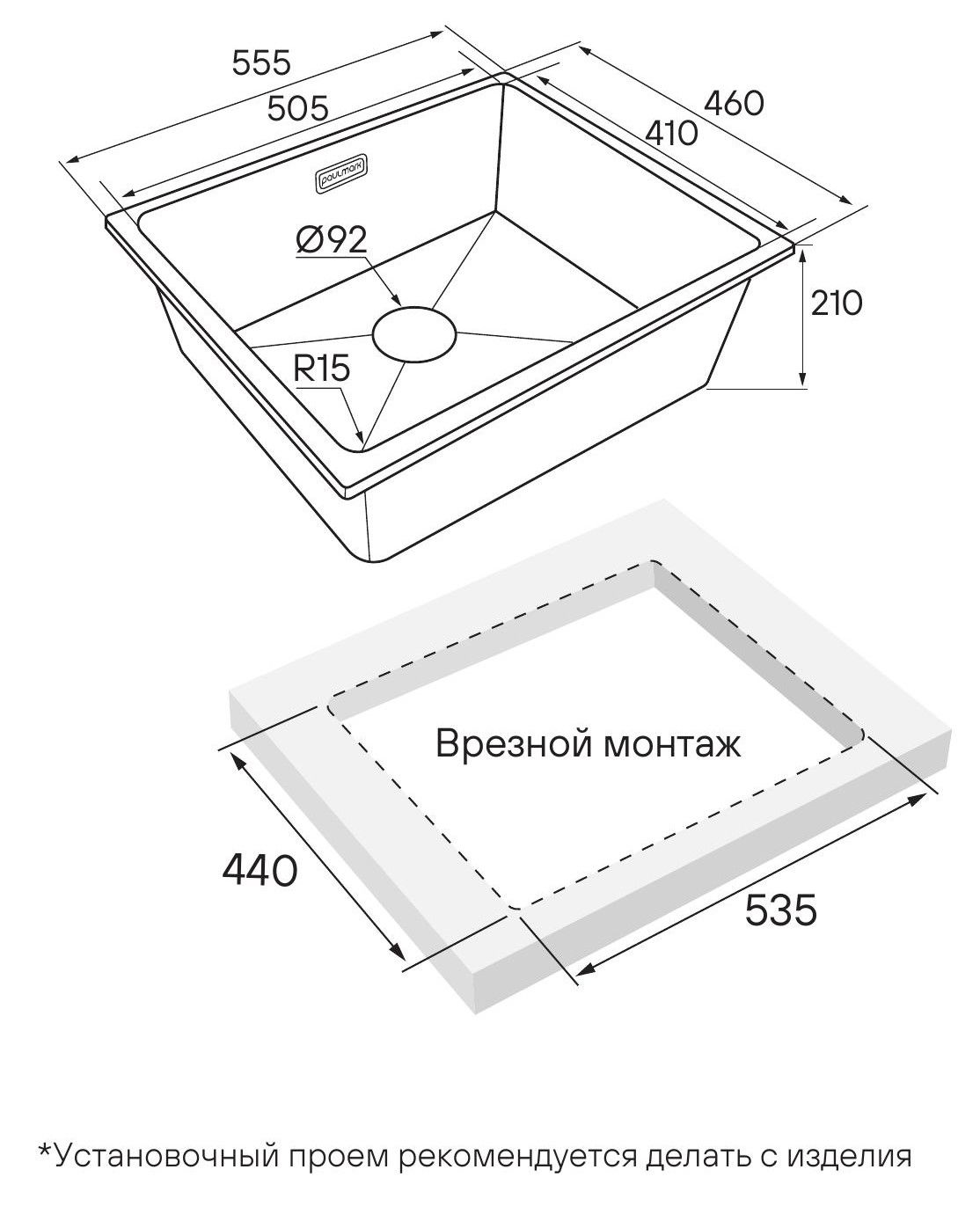Мойка создана как для современного способа монтажа под столешницу, так и для классического врезного монтажа.