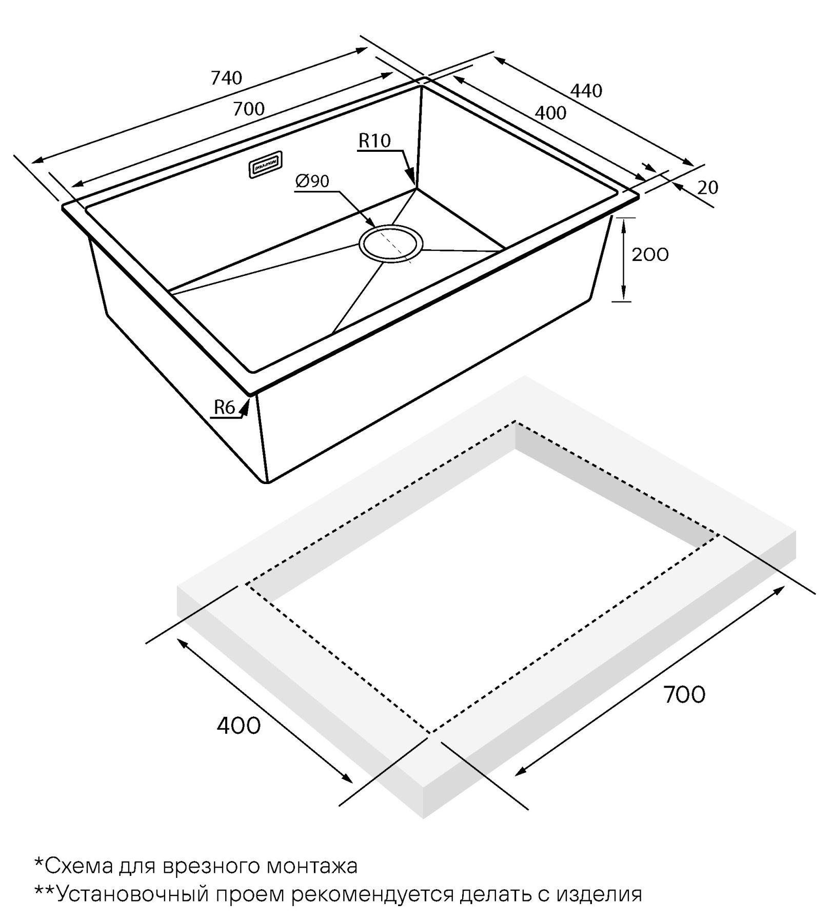 Мойки NEXT-SKEW 740 в оттенках BG и GM имеют прочное PVD покрытие, которое нанесено на нержавеющую сталь. Оно особенно устойчиво к появлению царапин и истиранию, не содержит микротрещин и является экологически чистым.
