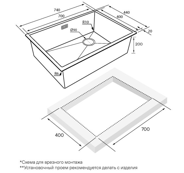 • Отверстия под смеситель: