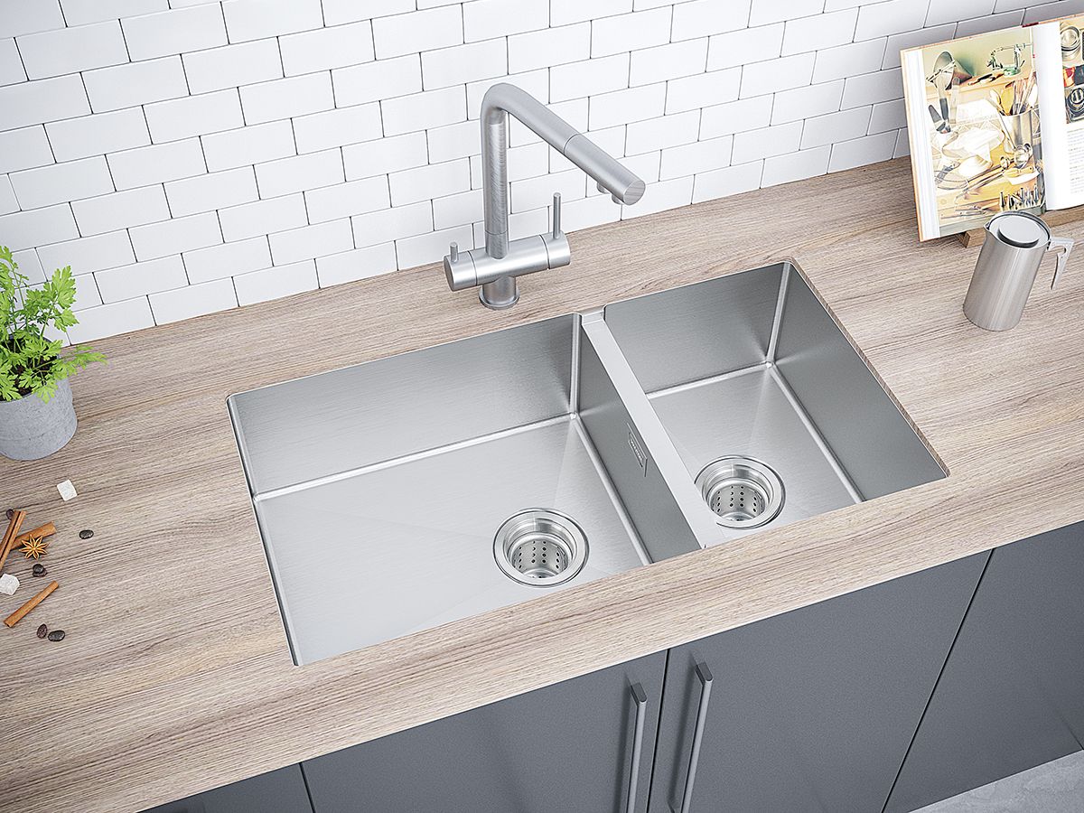 Мойка кухонная из нержавеющей стали, артикул PM527844-BS304-ая аустенитная нержавеющая сталь имеет низкое содержание углерода. В составе мойки содержится 18% хрома и 8% никеля, что делает данную мойку из нержавеющей стали не подверженной деформации и обеспечивает прекрасные эксплуатационные характеристики.Мойки OSSER в оттенках BG и GM имеют прочное PVD покрытие, которое нанесено на нержавеющую сталь. Оно особенно устойчиво к появлению царапин и истиранию, не содержит микротрещин и является экологически чистым.Имеет шумопоглощающее покрытие Stille® на внешней стороне чаши;