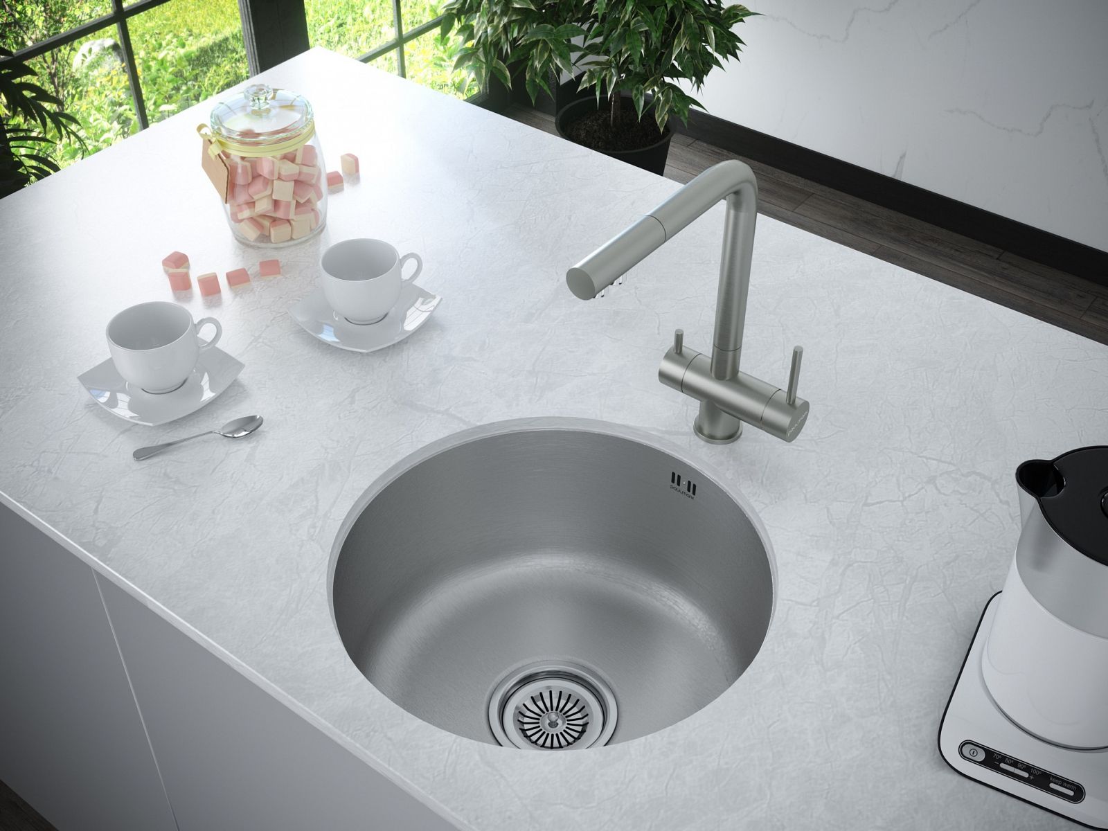 Мойка кухонная из нержавеющей стали, артикул PM404646-BS304-ая аустенитная нержавеющая сталь имеет низкое содержание углерода. В составе мойки содержится 18% хрома и 8% никеля, что делает данную мойку из нержавеющей стали не подверженной деформации и обеспечивает прекрасные эксплуатационные характеристики.Мойки WERRA в оттенках BG и GM имеют прочное PVD покрытие, которое нанесено на нержавеющую сталь. Оно особенно устойчиво к появлению царапин и истиранию, не содержит микротрещин и является экологически чистым.Не подвержена деформации;Выдерживает большой вес посуды и продуктов;