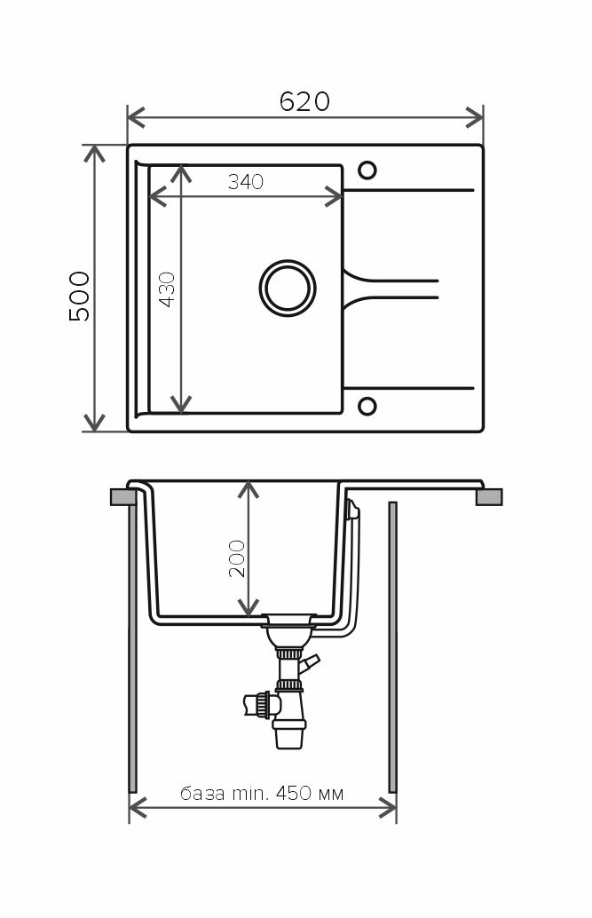 Мойка кухонная Polygran GALS-620 чёрный 444515 купить