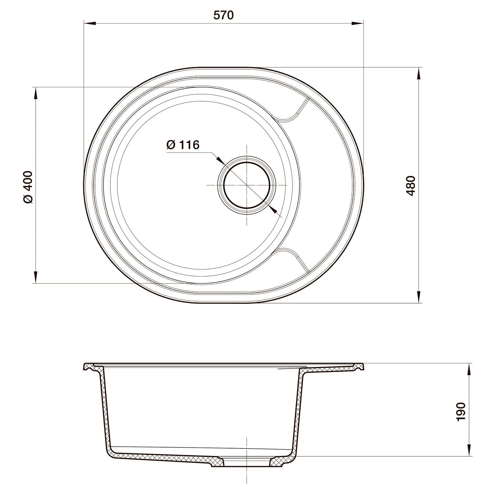 Размер чаши, мм: 400x400