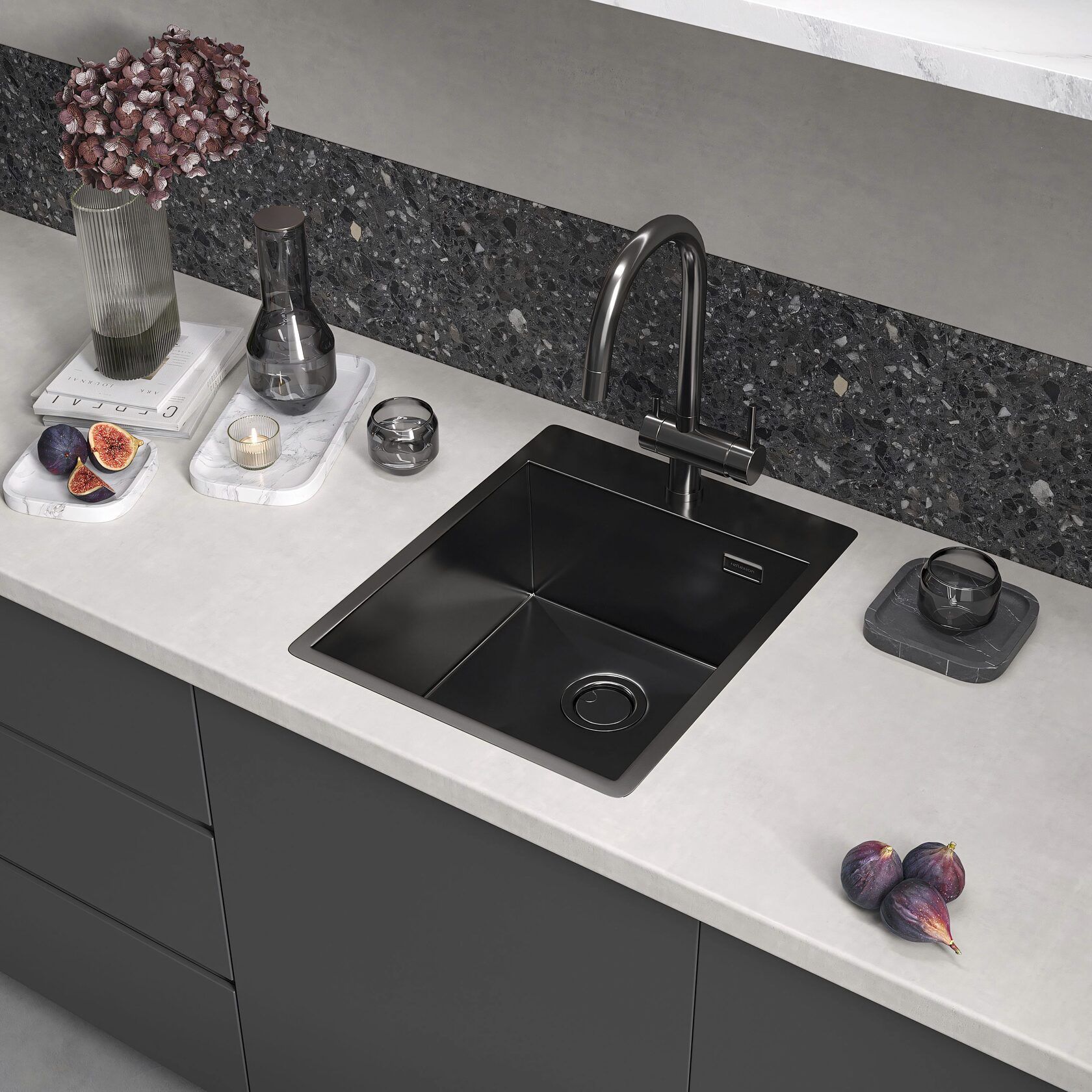 Мойка кухонная Reflexion Iseo 40-BL RX2240BL оружейная сталь