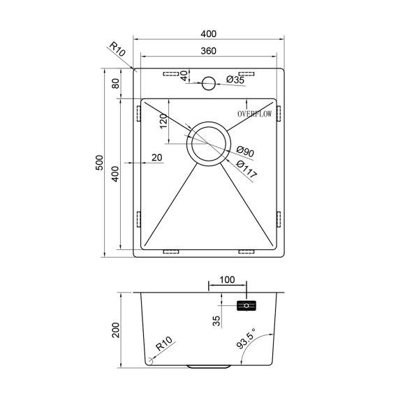 Размер чаши, мм: 360x400