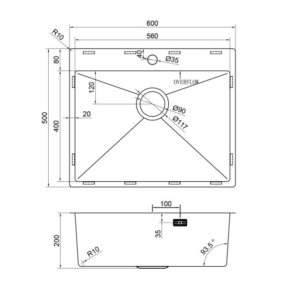 Размер чаши, мм: 560x400