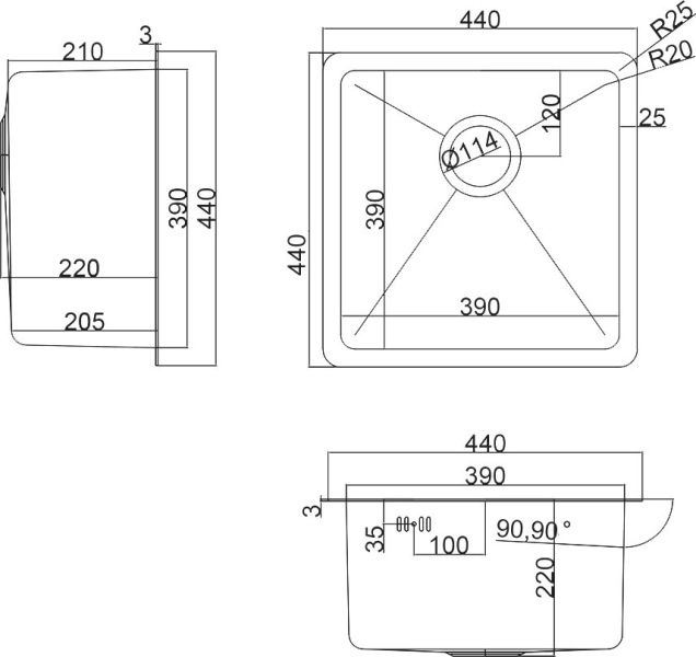 • Отверстия под смеситель: