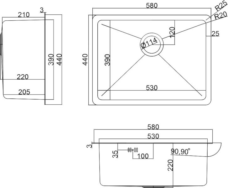 • Отверстия под смеситель: